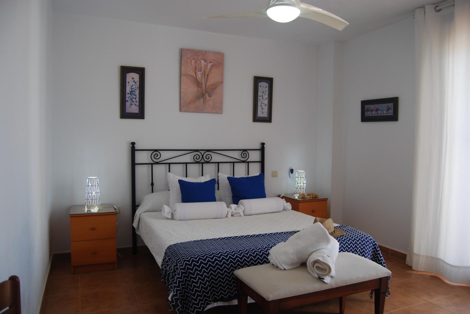 Apartamento de 3 dormitorios y 2 baños, cocina, salón , comedor, 2 plantas en la superior dormitorio matrimonio con baño y terraza. con garaje en sótano. Urbanización Poniente con piscina, a escasos 10 minutos andando a la playa . Aire acondicionado y wifi. Para 6 personas. No mascotas
