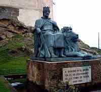 El alcázar desde donde, se supone, arrojó Guzmán el Bueno el puñal para que mataran a su hijo, es de estructura árabe, aunque reformada posteriormente, y junto al sitio don fué muerto su hijo, se alza un desmochado torreón avanzado que llaman de Guzmán; al pie se ve una lápida conmemorativa moderna del conde de Niebla, en honor de su ilustre antepasado.
