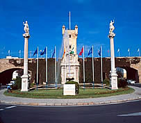 Frontera de los dos Cádiz, el Cádiz antiguo, amurallado, y el nuevo, de tierra ganada al mar, las viejas puertas del Cádiz datan de la segunda mitad del siglo XVII, aunque pronto se vieron insuficientes, por lo que se encargó al ingeniero Sala, en 1728 una reforma que atendiera tanto al lienzo de murallas como a los baluartes y defensas del frente de tierra.