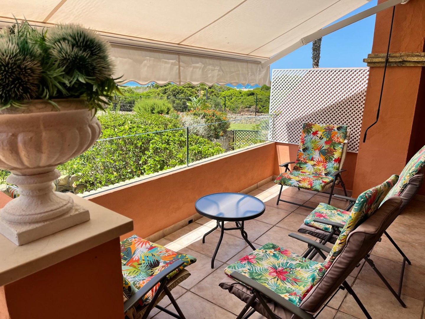 Alquiler de casa de 3 plantas y 180 m2, a pie de playa!. Consta de gran salón, 3 cuartos de baño, cocina, porche de 20 m2, patio de 20 m2 y terraza de 9 m2. Zonas ajardinadas con 2 piscinas, 2 pistas de tenis y paddle. Casa lujosa con vistas al mar.