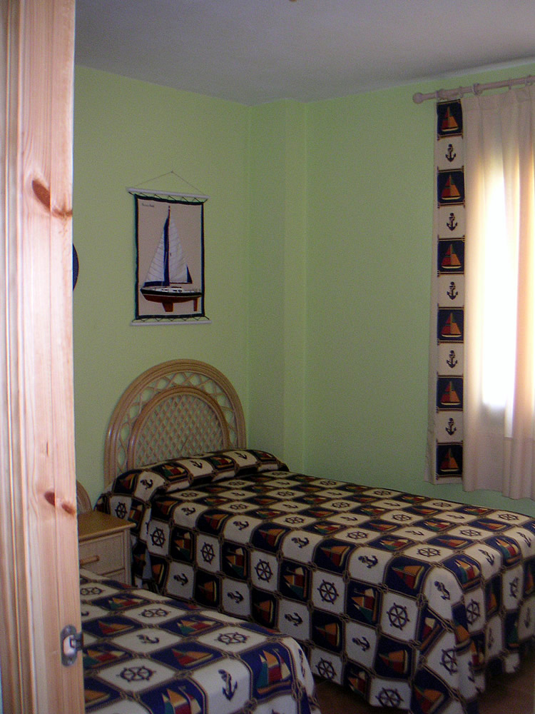 Alquiler de coqueto apartamento de 80 m2 a 25 m de la playa, en urbanización con 2 piscinas, 2 pistas de tenis-paddle y zona recreativo infantil.