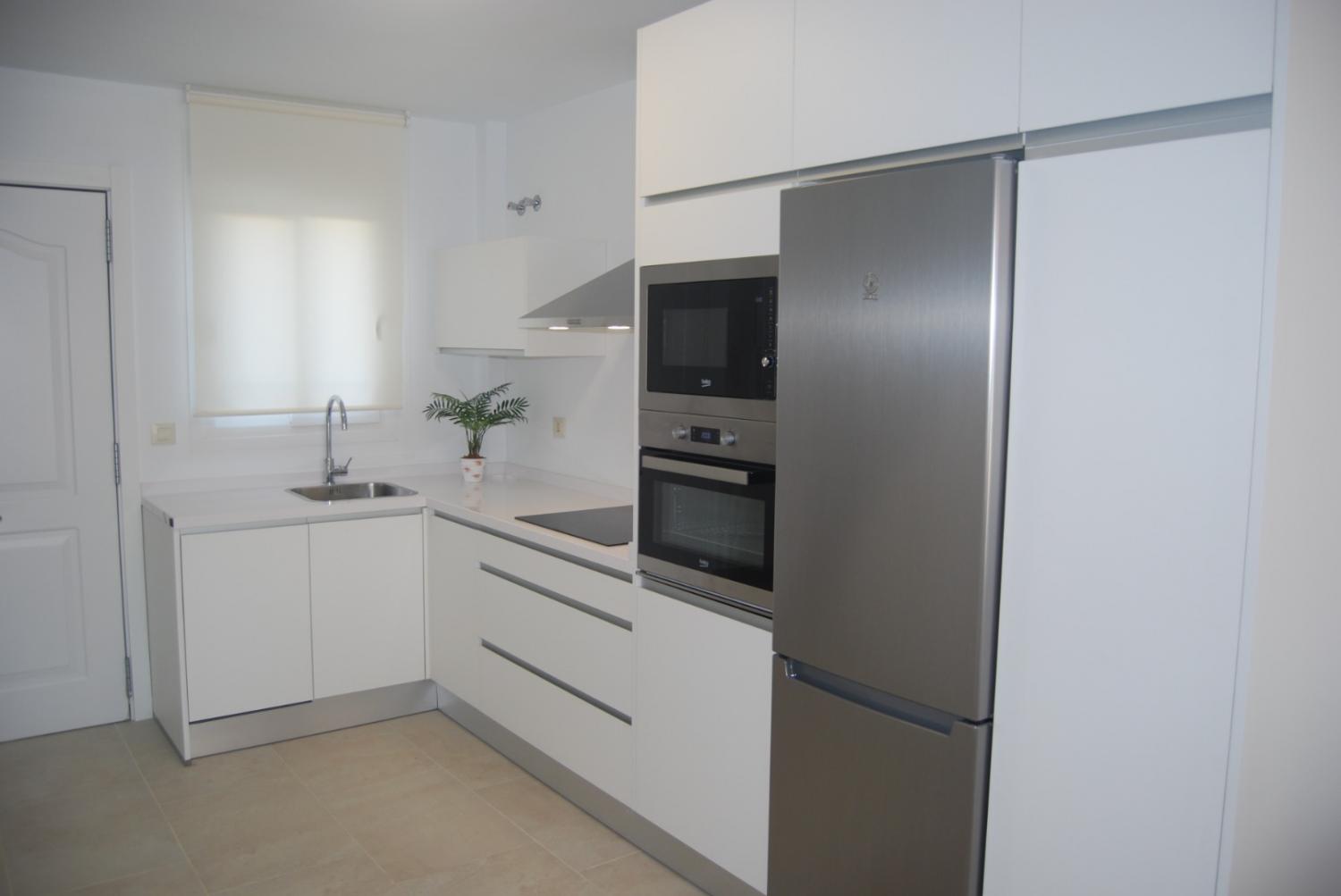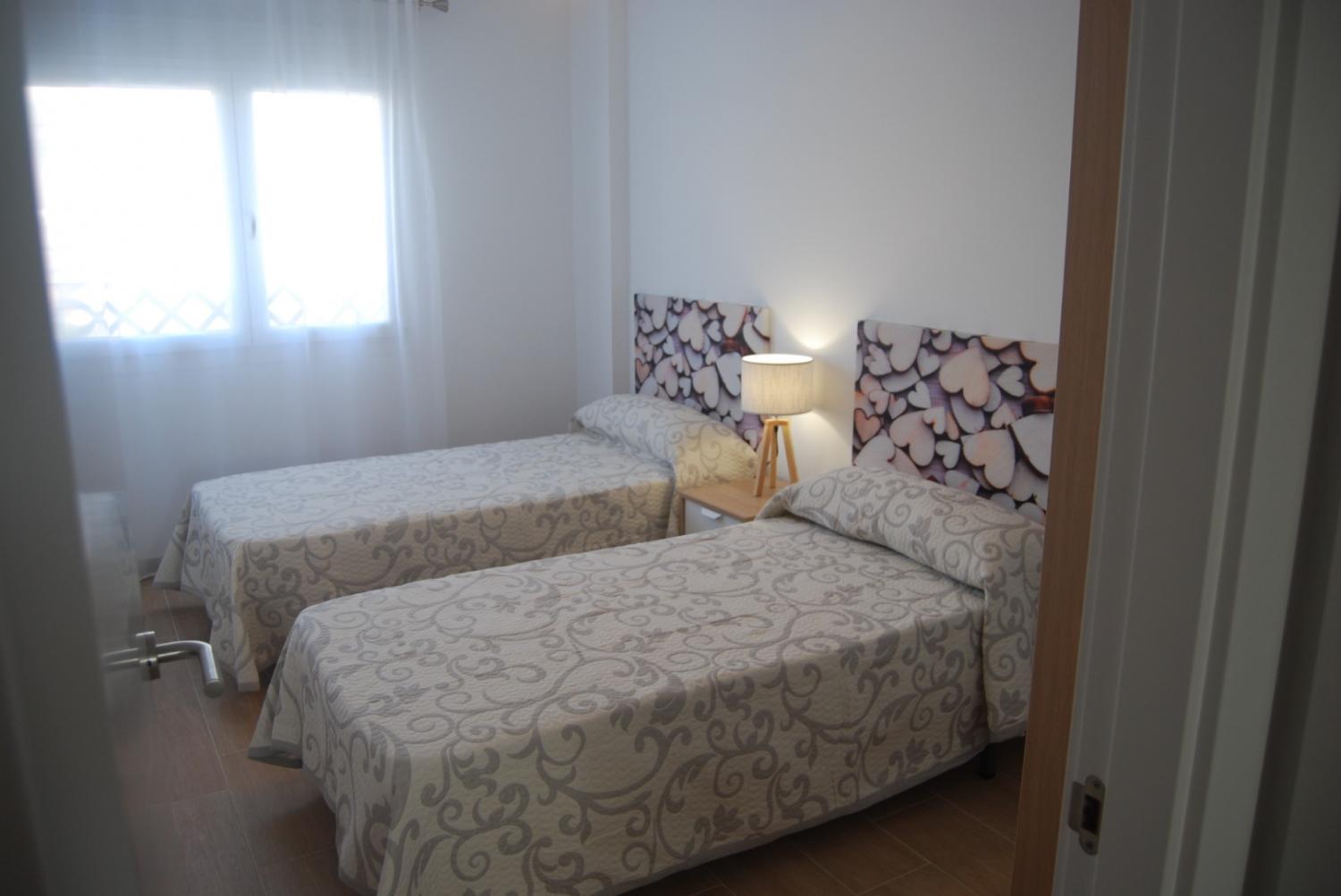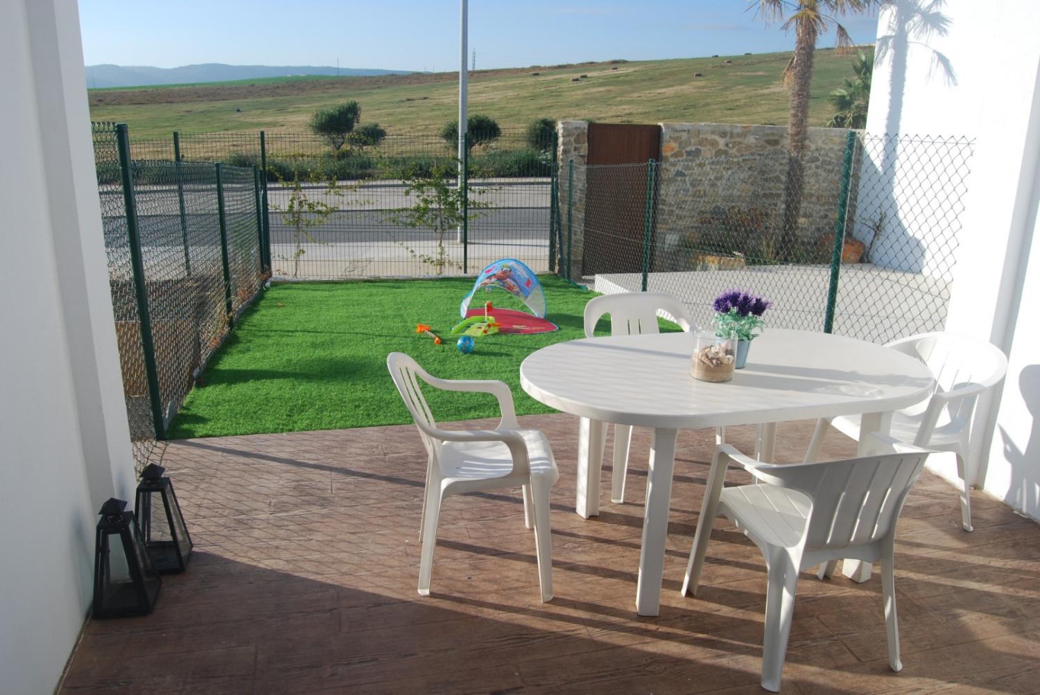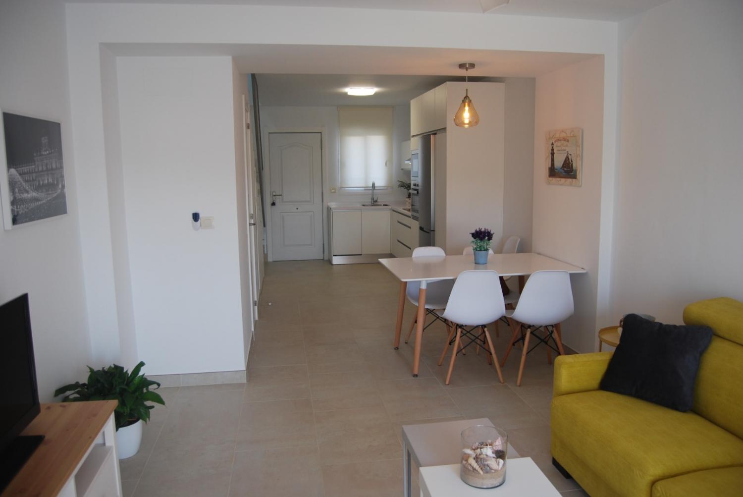Casa adosada en Urb. Miradores , con piscina , de dos dormitorios , 2 baños cocina y salon, porche y jardin, plaza de garaje en sótano, wiffi , ventiladores de techo, a 8 minutos andando a la playa.