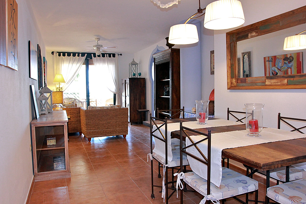Alquiler de gran y moderno frontal de 106 m2 en una 2ª planta. Consta de salón, cocina, dos cuartos de baño y gran terraza de 10 m2 con vistas directas al mar. Garaje cubierto. La Urbanización dispone de amplísimos jardines con dos piscinas, 4 pistas de tenis-paddle y zona recreativo infantil.