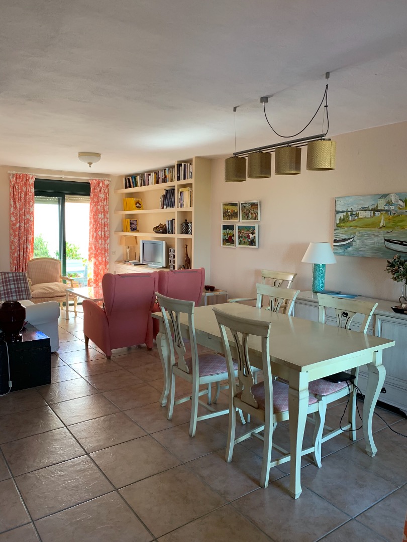 Bonita casa, muy agradable decorada, en primera línea de playa y con espectaculares puestas de sol desde las terrazas,situada en una urb. muy tranquila y cuidada. Tres plantas, perfectamente equipadas. Dormitorio principal con impresionantes vistas,con baño incorporado. Dormitorio con litera muy cómoda con tres camas y un tercer dormitorio con dos camas, muy amplio. Un segundo baño interior. Todos los armarios están forrados. Aire acondicionado.