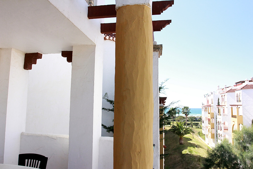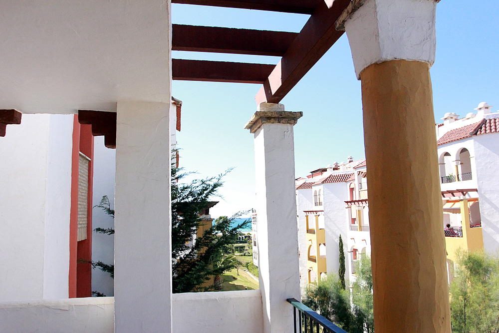 Apartamento de 80 m2 situado en una 3ª planta. Consta de salón, un cuarto de baño, despensa y terraza de 15 m2 con unas magníficas vistas al mar. Garaje cubierto. Amplias zonas ajardinadas, 2 piscinas, 2 pistas de tenis-paddle y zonas infantiles.