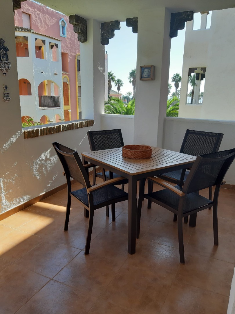 Alquiler de apartamento de 108 m2 en una 2ª planta. Consta de salón, dos cuartos de baño, cocina, 2 dormitorios y garaje cubierto. Zonas ajardinadas con 2 piscinas y paddle. Se encuentra a 100 m. de la playa. Lujo y confort.