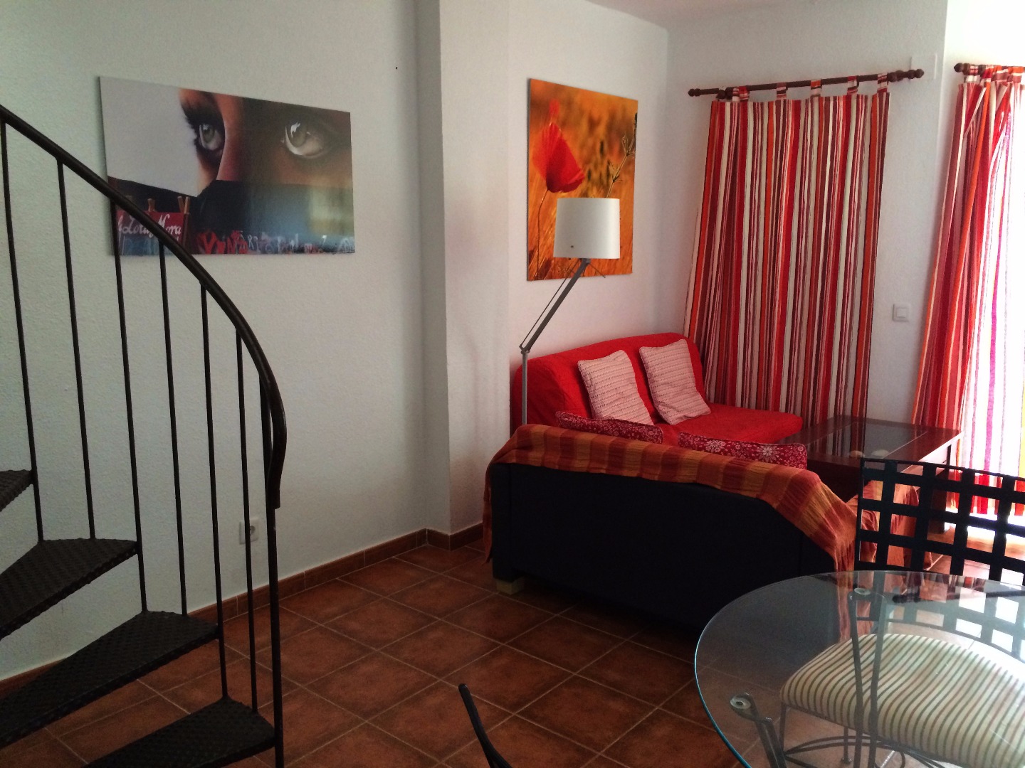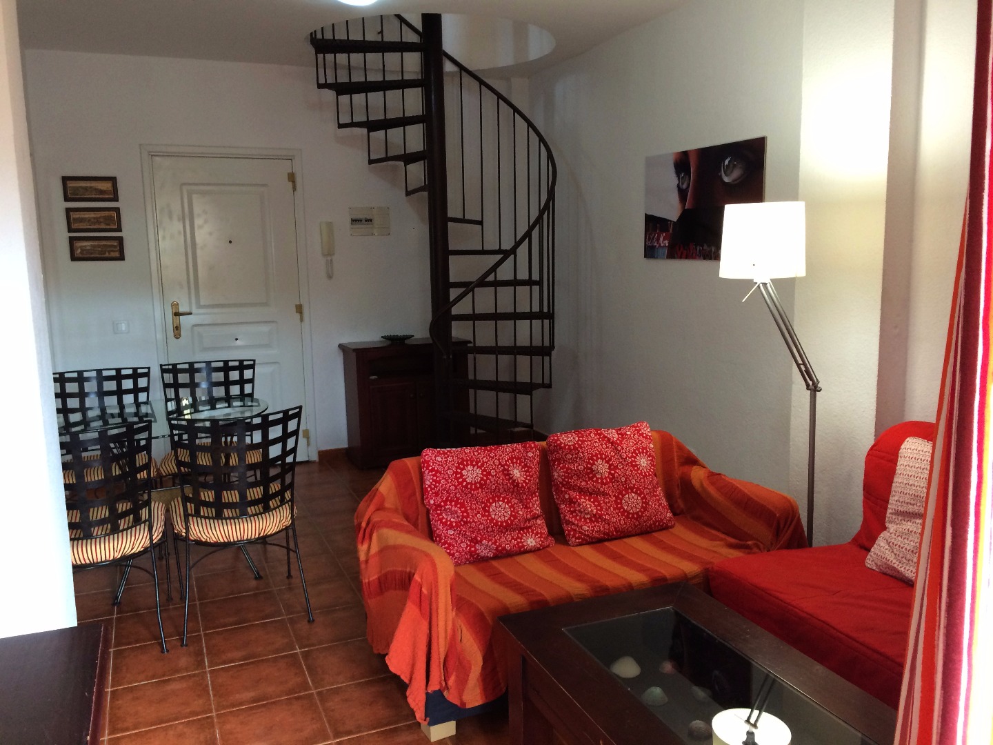 Alquiler de precioso ático de 84 m2 en una tercera planta. Consta de salón, cocina, baño, terraza junto al salón, terraza/solarium de 60 m2, con maravillosas vistas del mar y garaje cubierto. La Urbanización tiene 2 piscinas, 2 pistas de tenis/paddle, pista de baloncesto y parque infantil