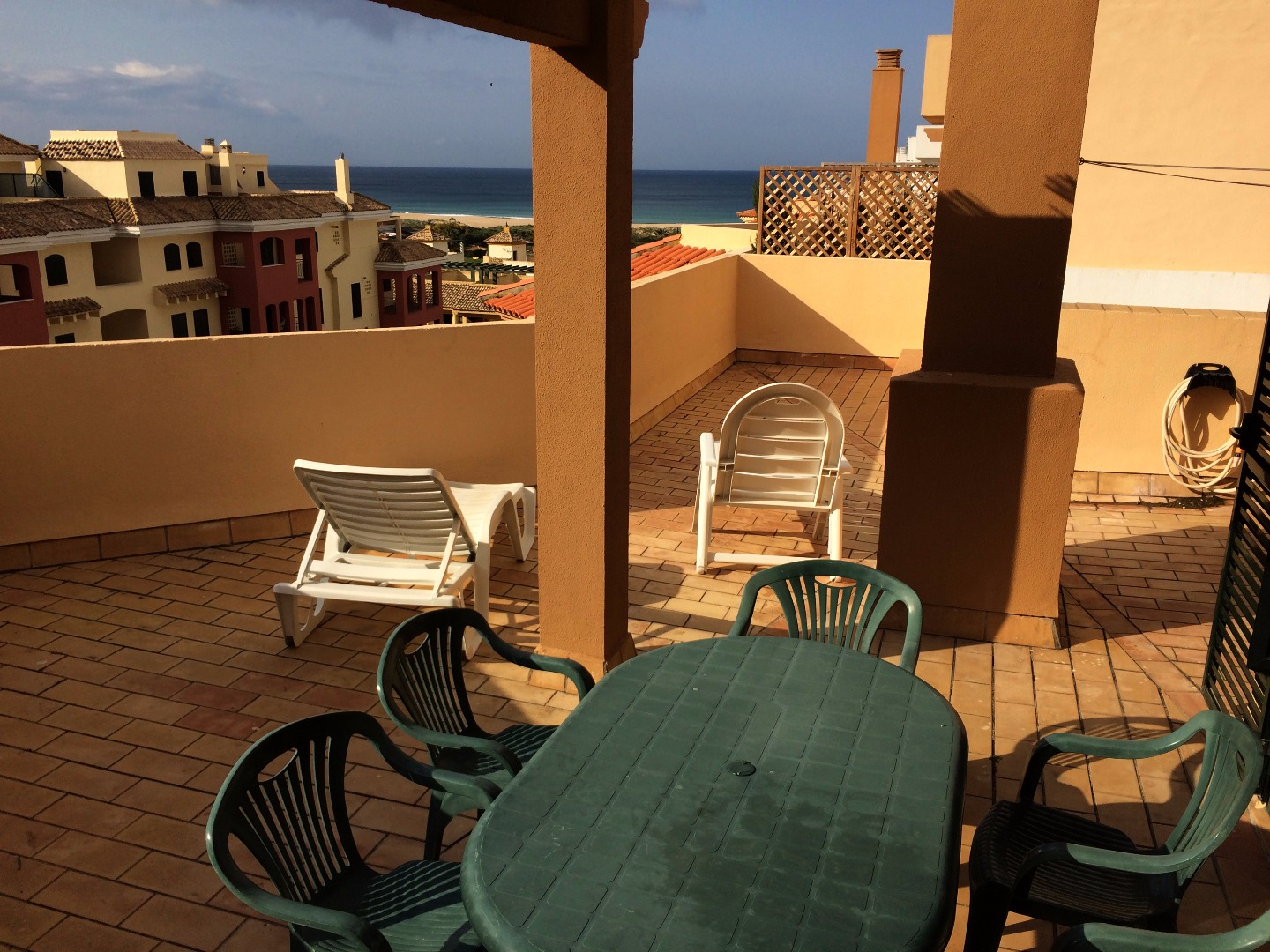 Alquiler de magnífico ático de 84 m2 en una tercera planta. Dispone de un gran salón, 3 dormitorios, un cuarto de baño, una primera terraza junto al salón y una segunda terraza/solarium de 55 m2, con unas magníficas vistas del mar. También tiene garaje cubierto. Se encuentra situado a 3 Km. de Zahara de los Atunes y 50 m. de la playa. La Urbanización posee 2 piscinas, 2 pistas de tenis/paddle y zona recreativa infantil
