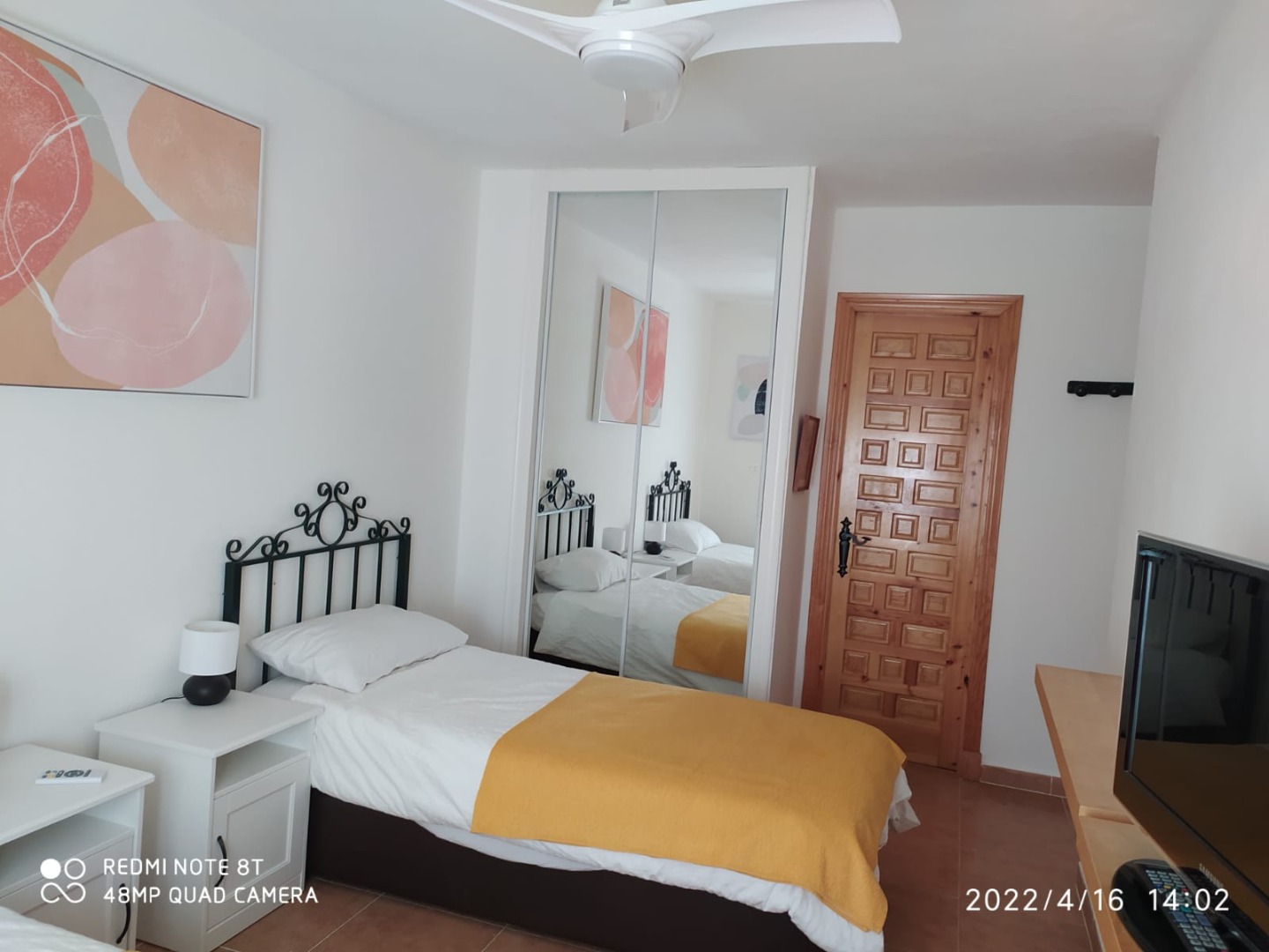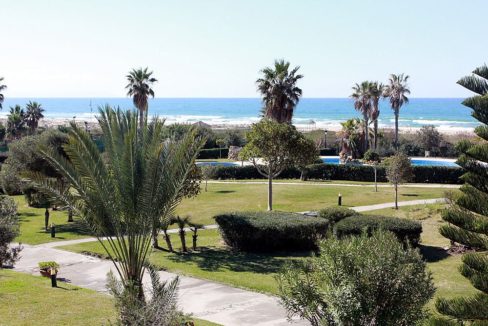 Bonito apartamento a pie de playa semifrontal de 75 m2, en 2ª planta. Consta de salón, 2 cuartos de baño, cocina, terraza de 12 m2 con vistas al mar y garaje cubierto. Grandes zonas ajardinadas en urbanización con 2 piscinas y 2 pistas de tenis-paddle .