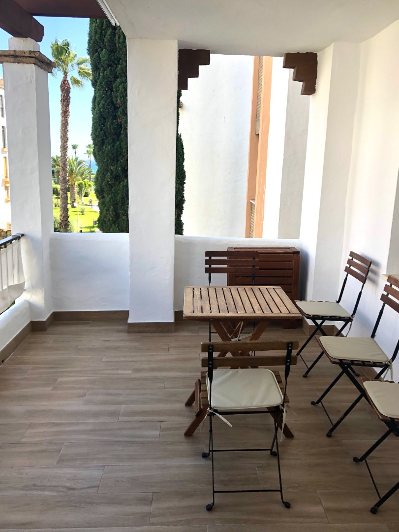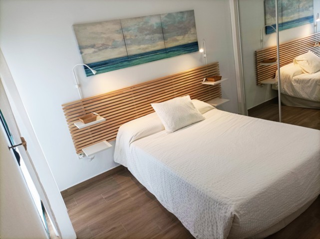 Alquiler de apartamentos de 79 m2 ,1ª planta con ascensor desde garaje. Dispone de salón con aire, wifi y terraza de 12 m con vistas al mar, cocina - lavadero, 2 dormitorios y baño . La Urb. tiene grandes jardines, 2 piscinas y 4 pistas de tenis/paddle. Salidas directas a la playa y seguridad.