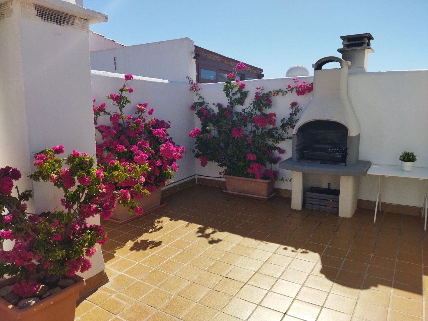 Alquiler de bonito ático de 100 m2 en una cuarta planta.Dispone de un gran salón, dos cuartos de baño, tres dormitorios, cocina-lavadero, una primera terraza de 15 m2 en planta baja y segunda terraza solarium de 60 m2, con vistas al mar y montaña, barbacoa y garaje cubierto.Amueblado nuevo de primera calidad y totalmente equipado en cocina, ropa de cama y toallas.Situado a 200 m. de la playa y 5 minutos del pueblo. 2 piscinas, 1 pista de tenis paddle y zona recreativa infantil.NO MASCOTAS
