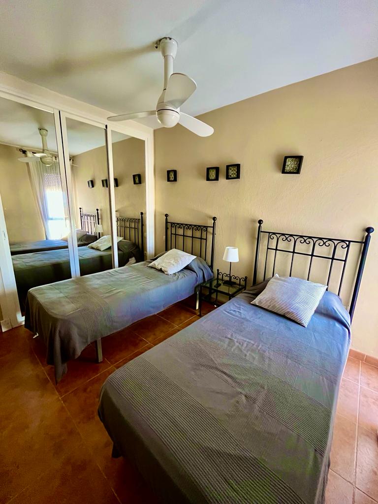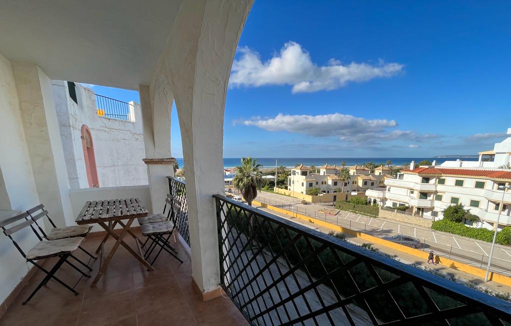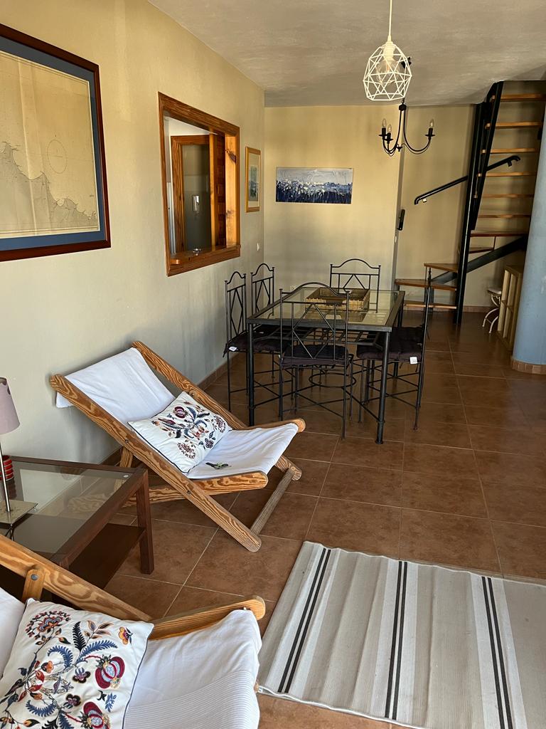 Alquiler de coqueto Atico/dúplex de 80 m2. Consta de gran salón con salida a primera terraza de 12 m2 y estupendas vistas del mar, dos habitaciones, dos cuartos de baño, cocina, una segunda terraza, junto al dormitorio de arriba, de 50 m2 y magníficas vistas a la playa y un garaje cubierto. Ascensor desde el garaje.