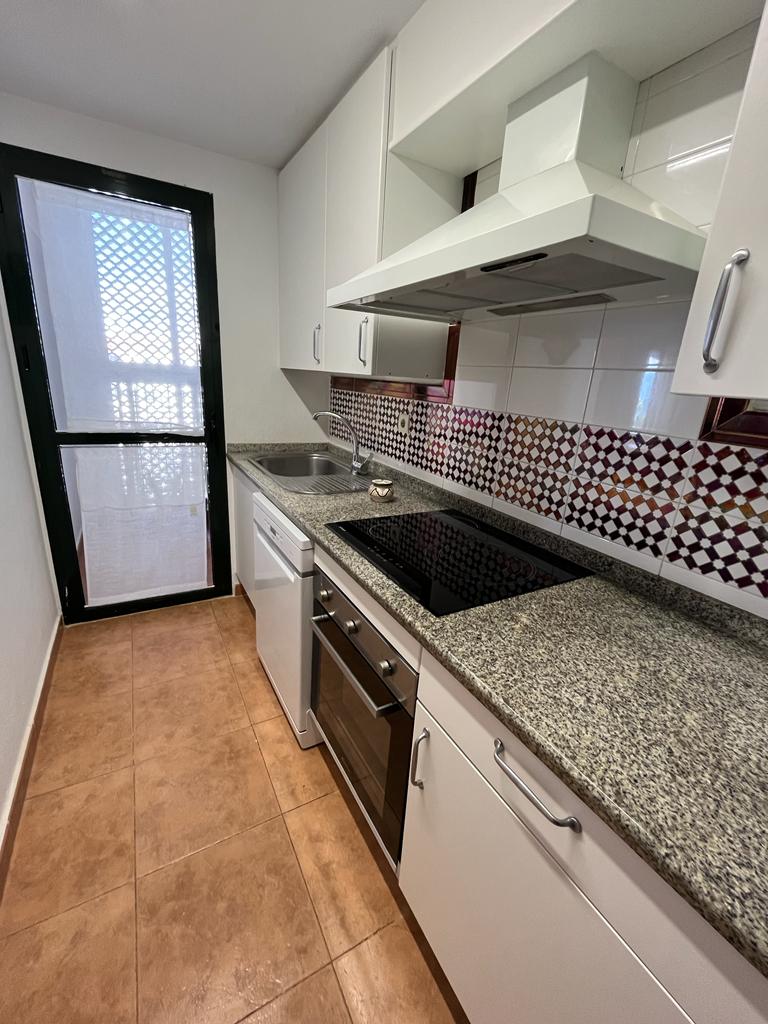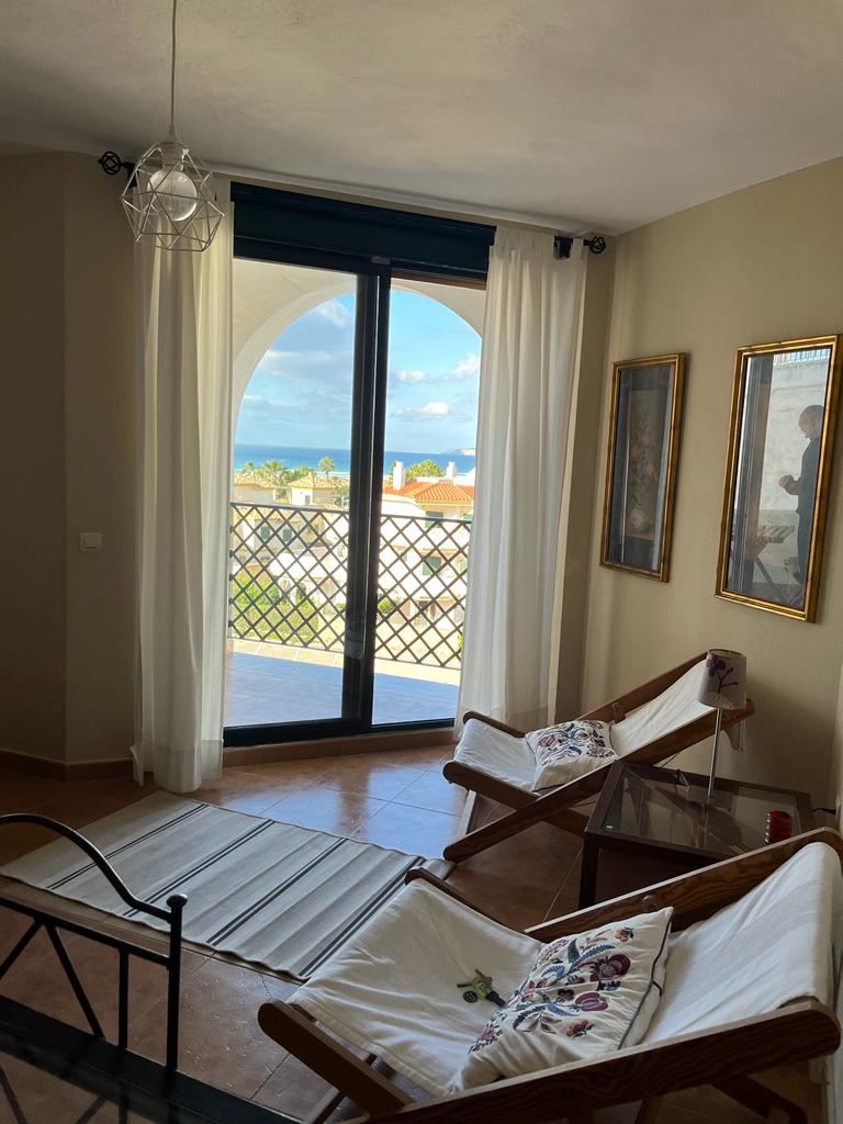 Alquiler de bonito ático. Consta de gran salón con salida a terraza de 12 m2 y vistas al mar, dos cuartos de baño, cocina, terraza solarium de 50 m2 con magníficas vistas del mar y garaje cubierto. La Urbanización consta de 2 piscinas, 4 pistas de paddle y zona infantil.