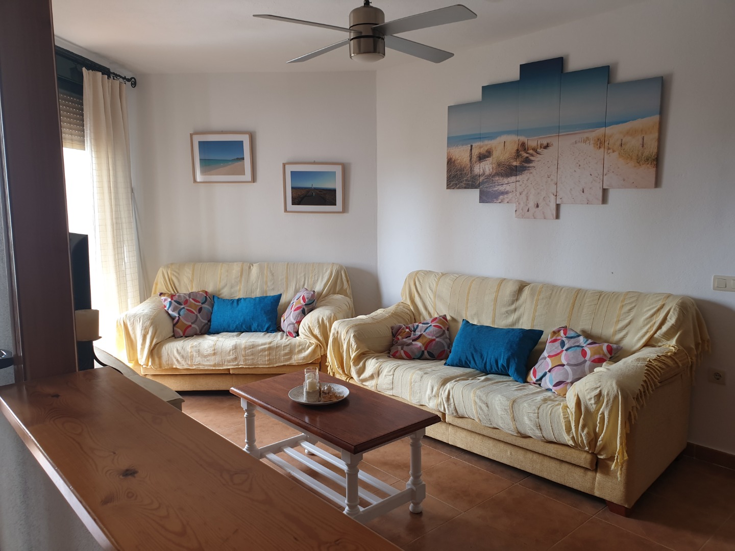 Apartamento en Urbanización ATLANTERRA COSTA con magnificas vistas en PRIMERA LINEA de playa, situado en 3 planta, consta de 2 dormitorios, 1 baño, Salón-comedor, cocina, lavadero. Terraza con vistas a la playa y al jardín privado. Cocina equipada con electrodomésticos y menaje completo. A la terraza se accede desde el salón y desde la cocina. Apartamento ideal por su acceso y ubicación para familias con niños y personas mayores o con movilidad reducida.