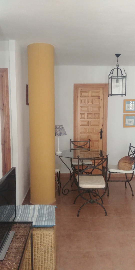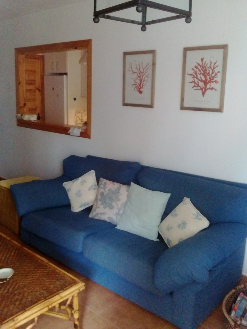 Alquiler de apartamento de 70 m2 en una 1ª planta. Consta de salón, un cuarto de baño, cocina, terraza de 12 m2 y garaje cubierto. Vistas a zonas de jardines y mar, con 2 piscinas, 4 pistas de paddle y zona infantil.