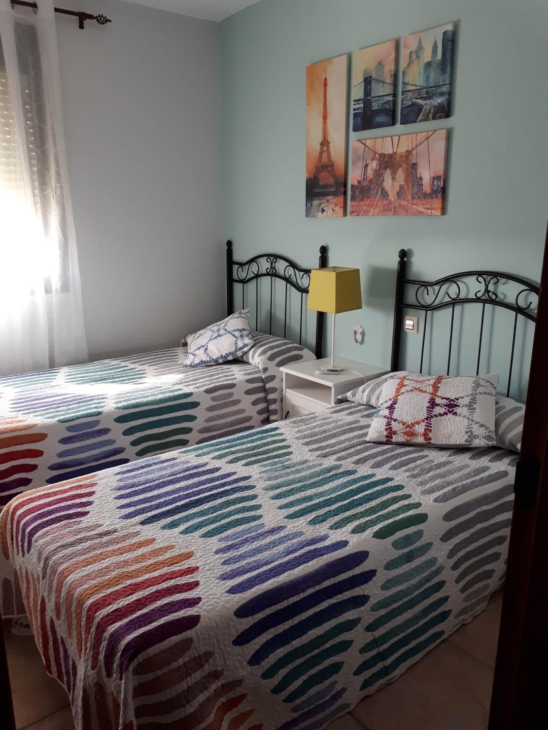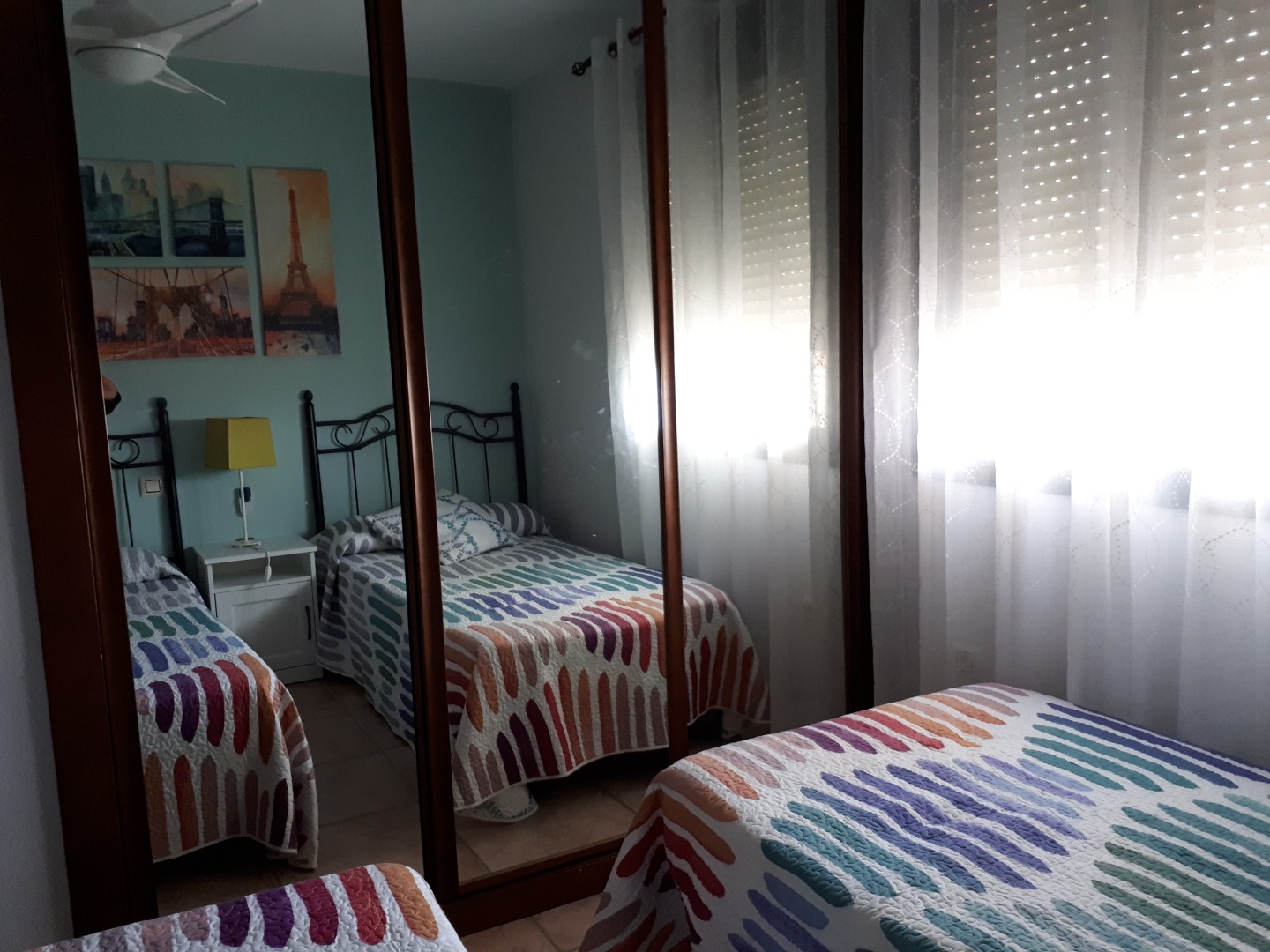 Apartamento en la urbanización Jardines de Zahara que consta de 2 dormitorios, un baño, cocina, salón comedor, terraza con vista al mar y plaza de garaje. Es una tercera planta con ascensor. Capacidad para 4 personas. Zonas verdes, pistas de padel y piscina en la urbanización, acceso directo a playa