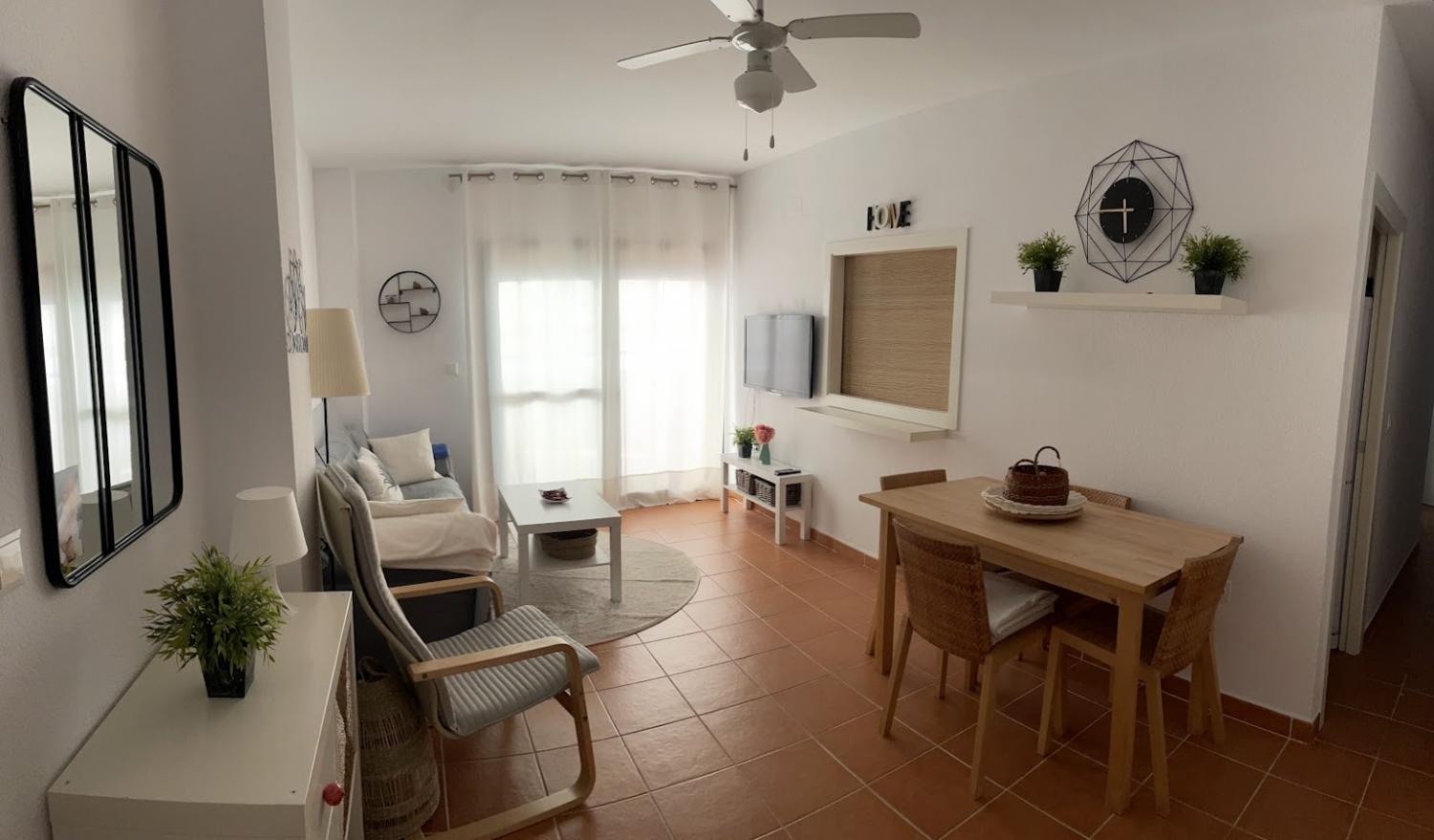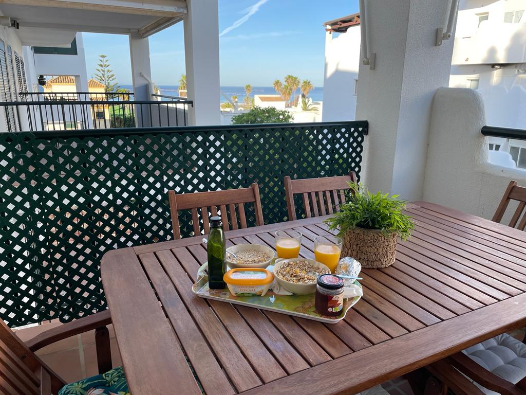 APARTAMENTO EN SEGUNDA PLANTA CON VISTAS AL MAR, ORIENTACION PONIENTE, URBANIZACION A PIE DE PLAYA CON TODO TIPO DE SERVICIOS EN SU ENTORNO (RESTAURANTES, SUPERMERCADOS, CARNICERIA , PESCADERIA, KIOSCOS) SIN NECESIDAD DE COGER COCHE. GRAN TERRAZA CON MESA COMEDOR Y SOFA . A 1,5 KM DEL PUEBLO.