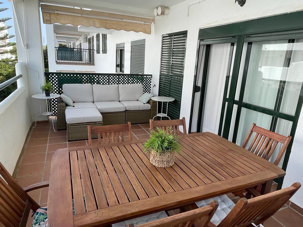 APARTAMENTO EN URBANIZACION A PIE DE PLAYA CON AMPLIA TERRAZA Y VISTAS AL MAR .
