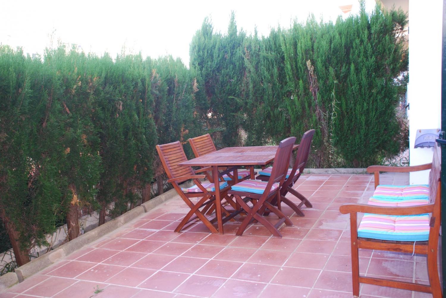 Precioso y confortable Bajo con Jardín con terraza exterior de 25 m2. El apartamento tiene dos habitaciones con armarios empotrados ideal para 4 personas , con habitación principal con cama matrimonio y habitación con dos camas tipo literas con posibilidad de una cama supletoria. También dispone de un patio interior con tendedor de ropa e ideal para guardar sombrilla, sillas de playa, etc.. Dada su orientación el apartamento es muy fresco con sol de medio día - tarde.