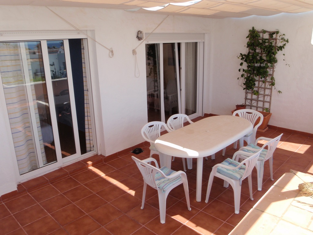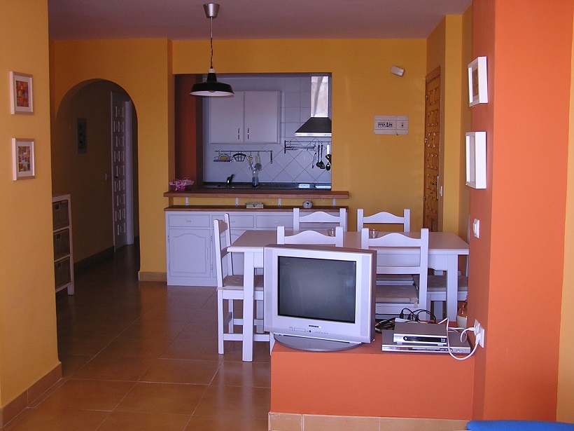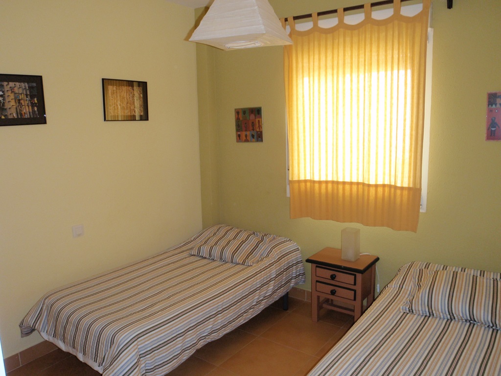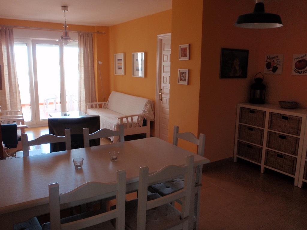Apartamento acogedor y agradable de tres dormitorios, dos baños y 2 terrazas. Con vistas hacia la piscina, el mar y la montaña de los alemanes. Ubicado en la urbanización Atlanterra Pueblo, a 150 mts de la playa y a 75 mts de un mini supermercado.