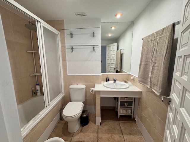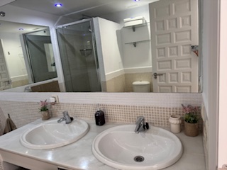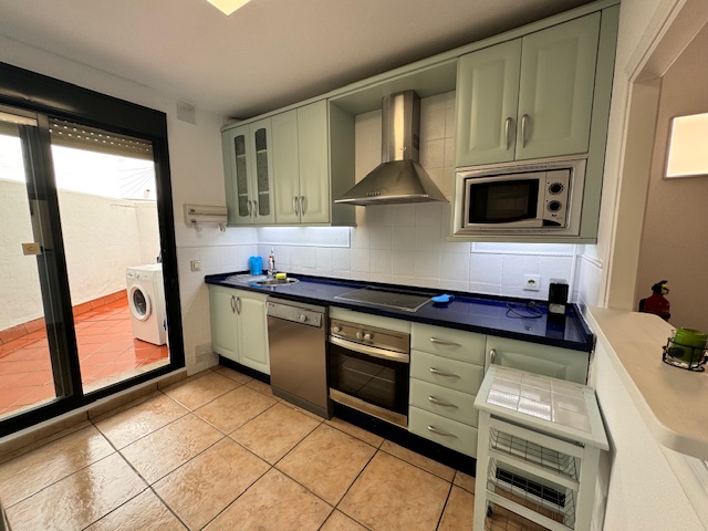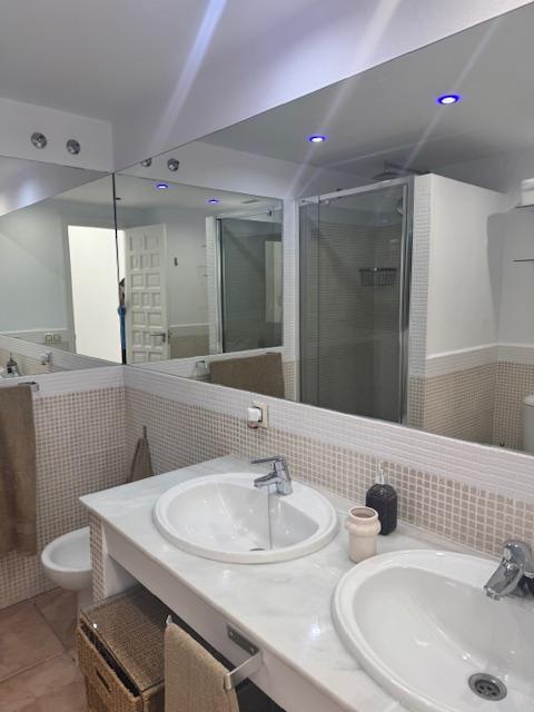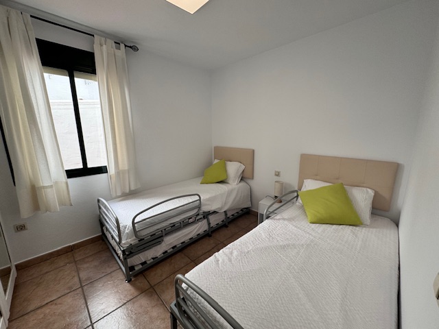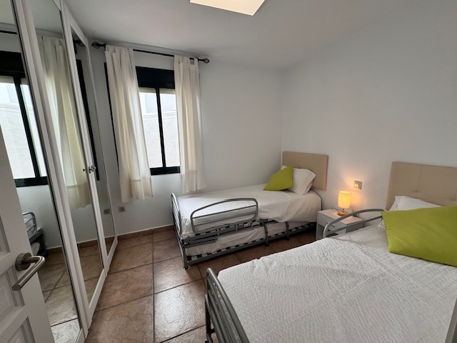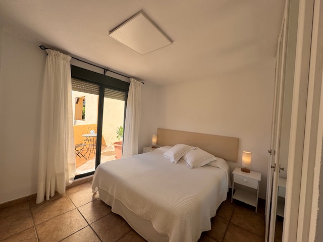 Alquiler de apartamento de 112 m2 a 50 m de la playa, en lujosa urbanización con 2 piscinas y 2 pistas de tenis-paddle. Gran salón, dos dormitorios, dos cuartos de baño, cocina, terraza de 14 m2 junto al salón, segunda terraza en dormitorio principal de unos 9 m2, patio interior de 20 m2 y garaje cubierto. Cama de matrimonio de 1,80 con colchón de viscoelástica con ventilador y aire acondicionado Tiene lavadora, lavavajillas, nevera de grandes dimensiones, freidora de aire y cafetera nespreso.