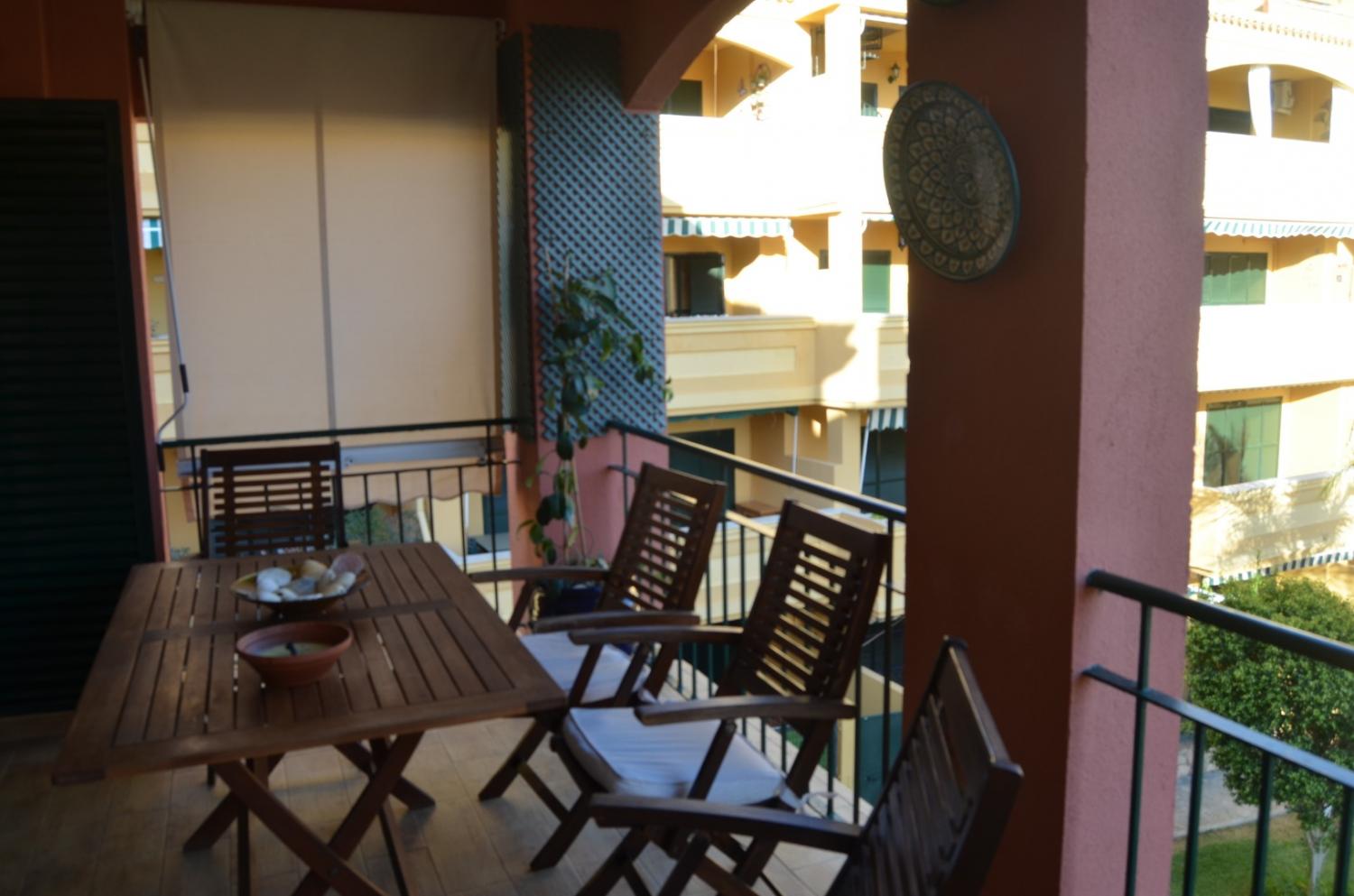 Apartamento perfectamente amueblado con vistas al mar y montaña. Urbanización completamente ajardinada con zona para pasear, piscinas adultos e infantil, zona infantil, gimnasio 3ª edad, pistas padel, tenis, baloncesto, iluminadas para uso nocturno. Salida directa de piscina a playa