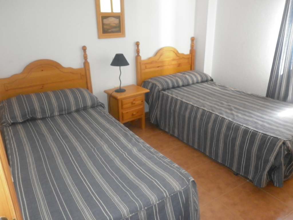 Apartamento a 100m de playa aprox ,cocina con menaje ,horno y microondas.lavadora ,plancha y secador de pelo ,toallas y sábanas.terraza con vistas a la piscina y montañas.sofa cama ,habitación con dos camas y habitación matrimonio.plaza de garaje cubierto.zona barbacoa ,piscinas pistas de pádel y parque infantil.solo quincenas y no se admite mascotas.