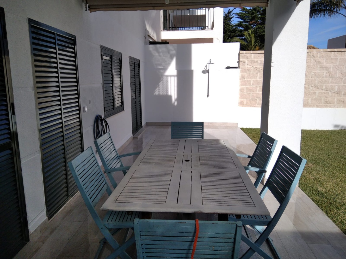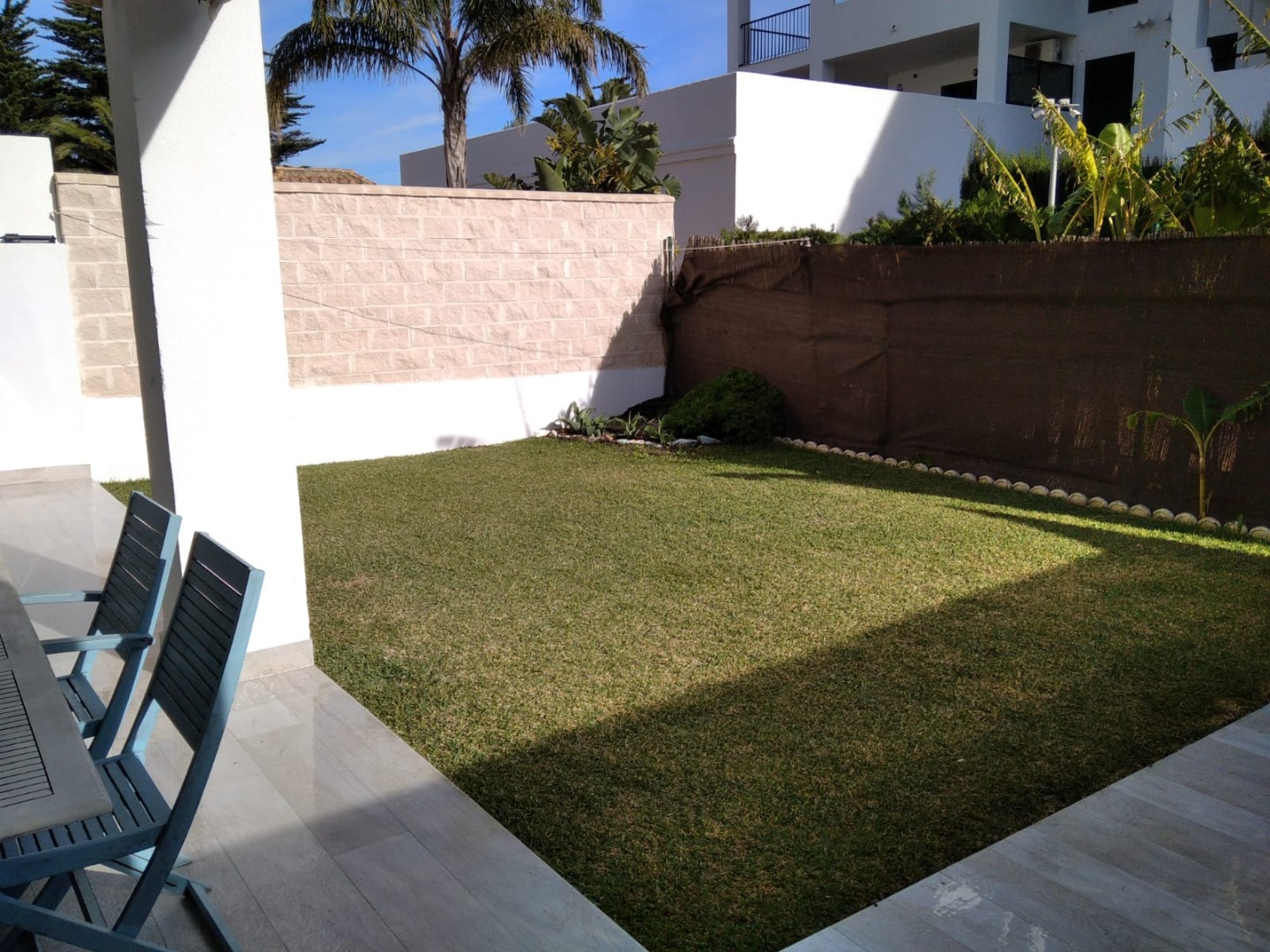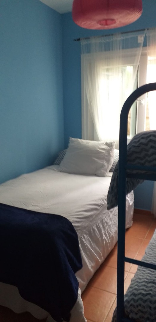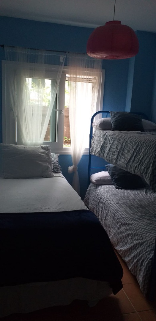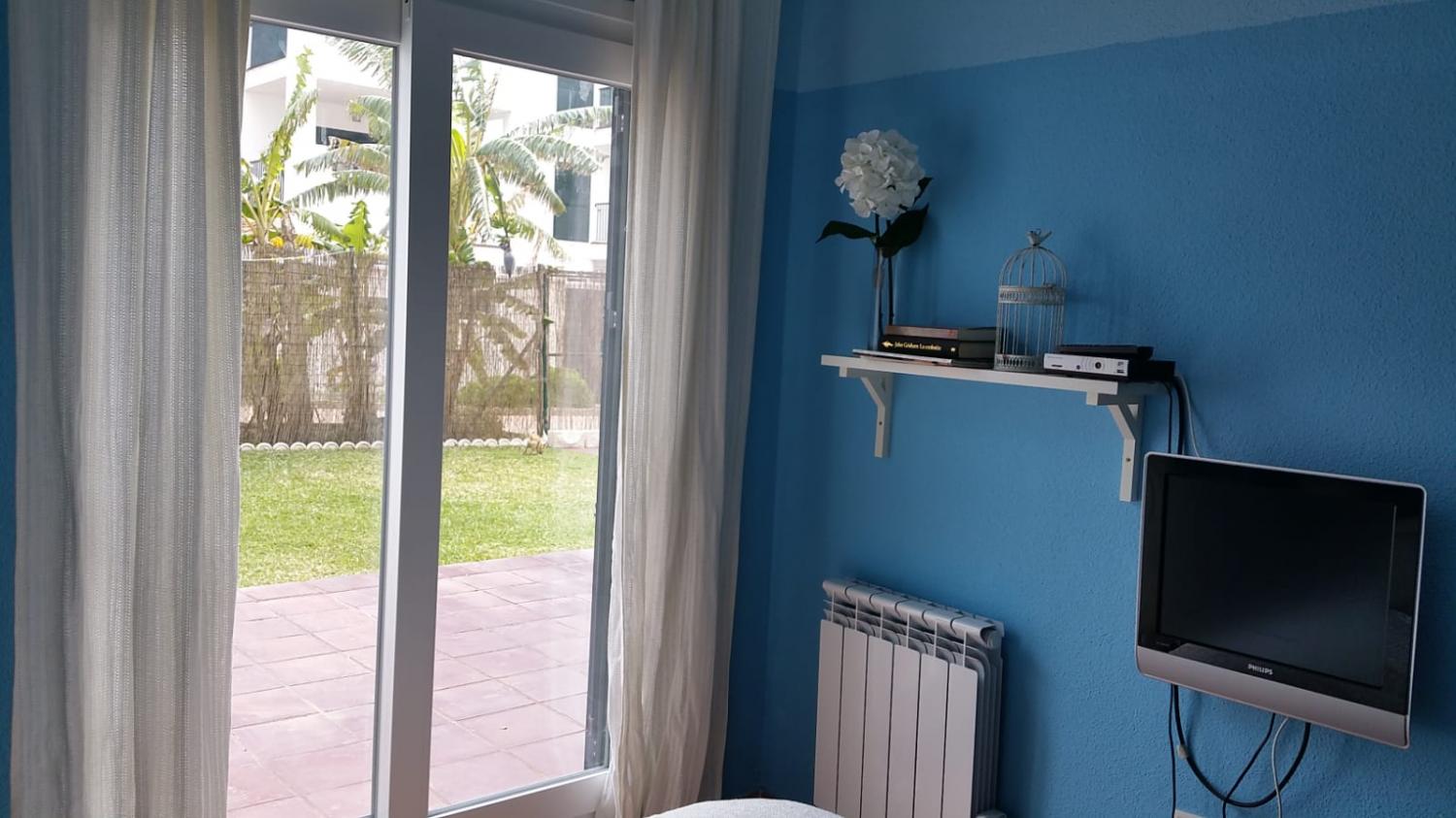 Apartamento, planta baja con amplio jardín. Consta de una estancia principal, que comprende el vestíbulo, salón y cocina. Lavadero independiente. Terraza cubierta, con toldos perimetrales para envolver el espacio, además de una amplio jardín con césped que trasmite la sensación de estar en una casa individual. Dos dormitorios, uno de matrimonio y otro con tres camas. Baño completo. El apartamento está completamente amueblado y dotado para su uso y disfrute. También cuenta con plaza de garaje.