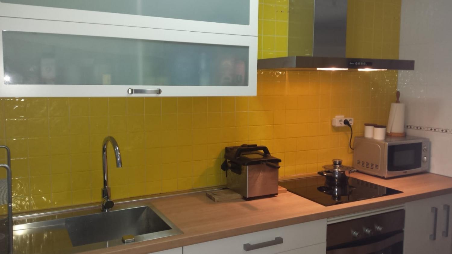 En la vivienda caben muy cómodamente, una pareja con tres niños. Y dispone de sofá cama para visitas.