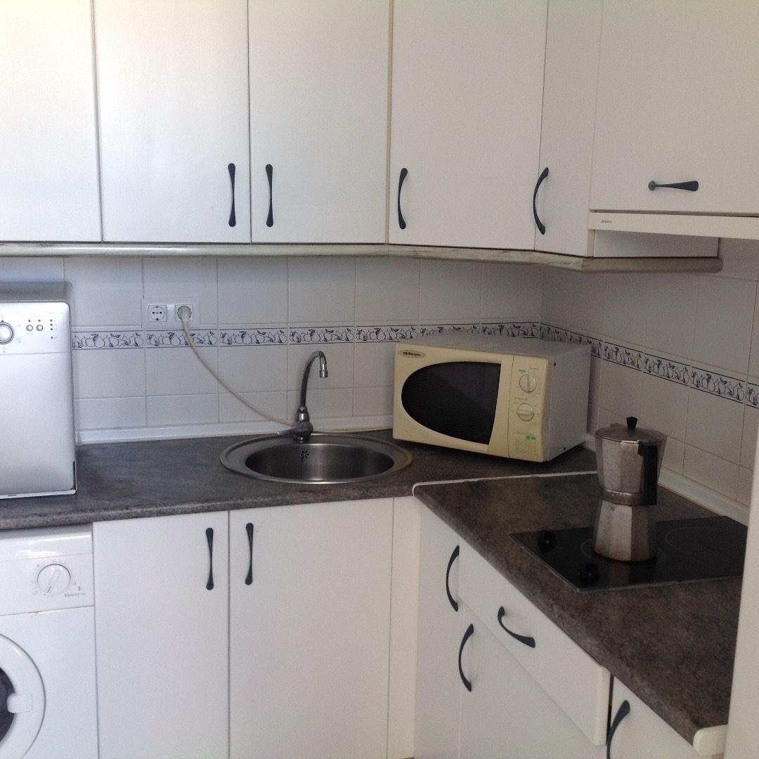 Alquiler de ático de 95 m2 a pie de playa, en urbanización con 2 piscinas dentro del mismo bloque. Desde la balaustrada de terraza se ve el jardín y piscina que están justo debajo. ATico. Consta de salón orientado a oeste con espectaculares puestas de sol, 2 dormitorios, 2 cuartos de baño, cocina, terraza de y garaje cubierto. A la terraza se accede desde salón, cocina y habitación principal. Vivienda orienta a Poniente.