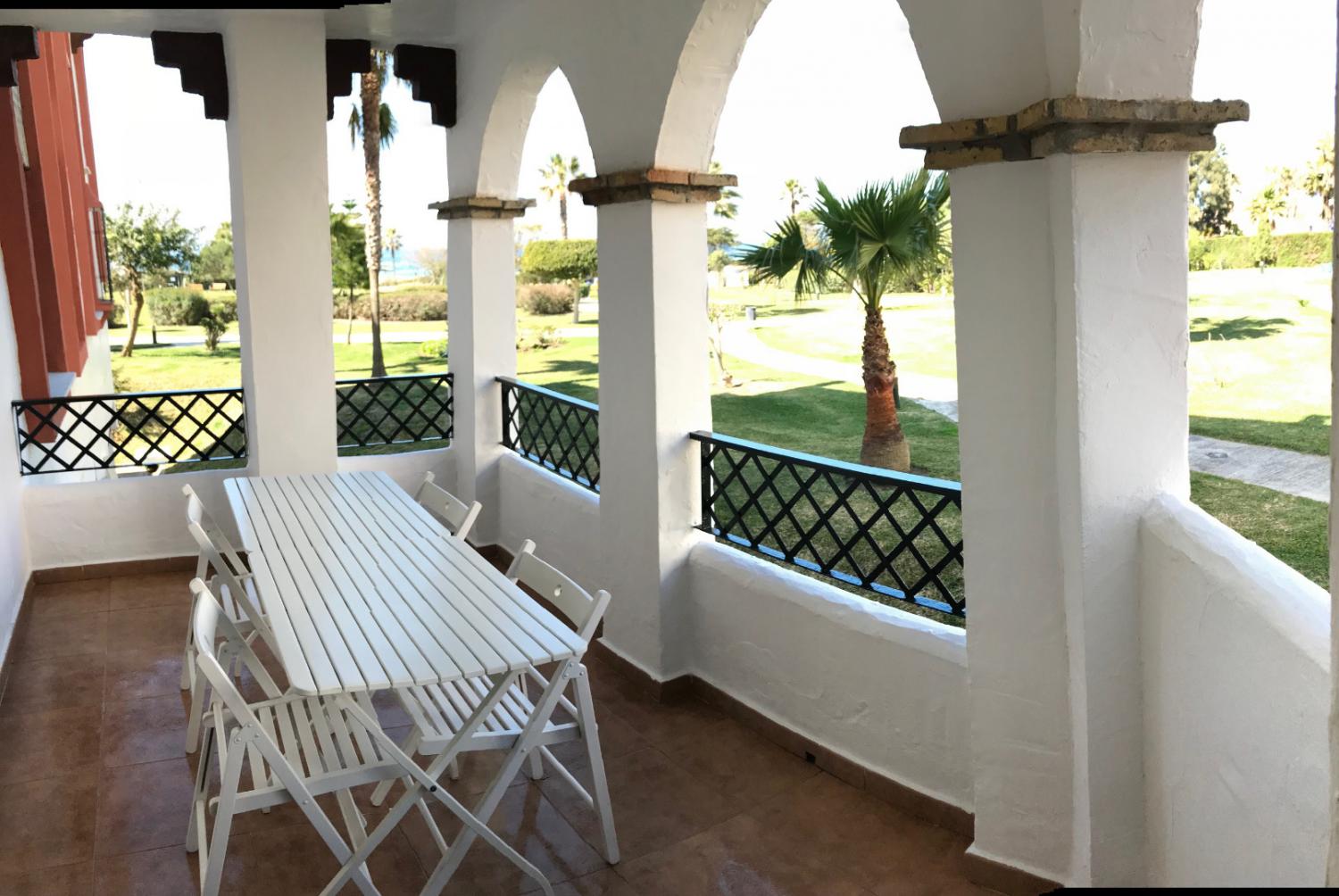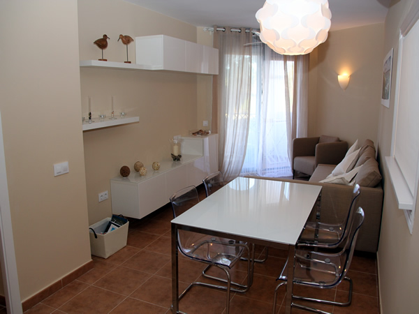 Alquiler de precioso apartamento de 75 m2 a pie de playa en una primera planta semifrontal, junto a zona de piscinas y jardines.