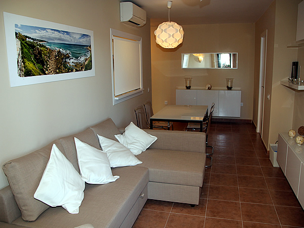 Consta de un salón, dos dormitorios, dos cuartos de baño, cocina con lavadero, y terraza frente al mar con maravillosas vistas de 14 m2.